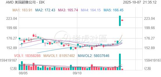 美國超微公司 漲超6%,昨日暴漲超23%。OpenAI宣佈將採購和部署多達6吉瓦的AMD Instinct系列GPU,潛在銷售額高達900億美元。作爲交換,AMD向OpenAI發行了以每股0.01美元行權價購買至多1.6億股AMD股票的認股權證。Jefferies將AMD評級從持有上調至買入,目標價從170美元上調至300美元。