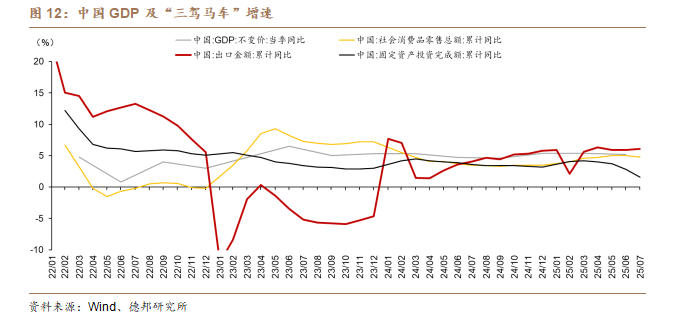 房地產和出口,曾經是支撐中國經濟高速增長的兩大支柱,如今都出現了顯著的變化與壓力。然而,這些轉變並未動搖整體增長格局,反而推動經濟結構加快重塑。新產業、新模式和新業態逐步成長爲新的增長點,說明中國經濟已不再完全依賴過去的路徑依賴,而是具備了轉型中的自我修復與再平衡能力。因此,中國經濟增長的底層邏輯,不僅在於需求端的波動,更在於其結構性優勢和生產能力。這種優勢包括完整的產業體系、強大的基礎設施、龐大的工程和科研人才儲備,以及在數字經濟、綠色產業、先進製造業等領域快速提升的競爭力。