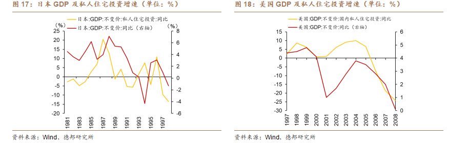 過去幾輪經濟週期中,房地產被認爲是拉動中國經濟增長的核心引擎,但當前行業調整的幅度與深度,已經使得其對整體經濟的帶動力顯著減弱。從國際經驗來看,在發達國家曾經經歷過的地產下行期中,住宅投資下行和GDP下行也較爲同步。自2021年以來,中國房地產投資完成額年度值下滑32%,商品房銷售額年度值下滑47%。按傳統邏輯,房地產作爲經濟大頭,其下滑本應拖累整體經濟,然而當前我國GDP增速依然保持在5%左右。