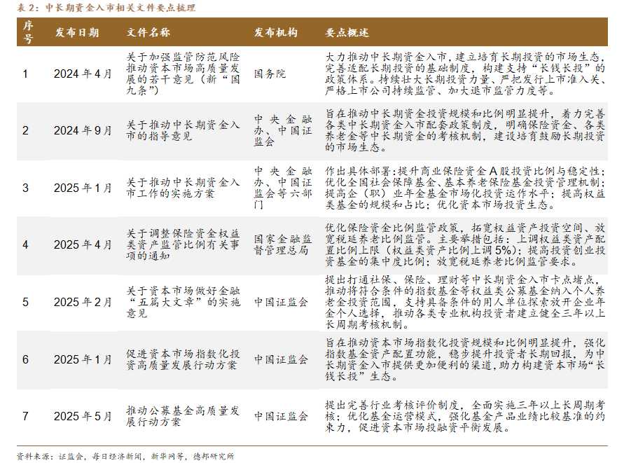 積極拓寬中長期資金入市渠道。924以來,政策層圍繞“中長期資金入市”出臺多項核心文件,形成“頂層設計+配套細則+激勵措施”的完整制度鏈。