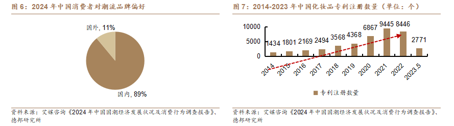 國潮復興&文化認同——黃金珠寶/美妝/影視:中國經濟實力增長推動國潮自信和本土文化覺醒,大衆消費者對國貨品牌產品接受度在逐步提升。①黃金珠寶:傳統工藝製作的國風飾品越來越受歡迎,以老鋪黃金、周大福“傳承“系列、潮宏基“非遺花絲”系列爲代表的珠寶品牌更多強調東方文化傳承。②美妝:本土美妝品牌崛起,從包裝、品類、功效再到生產工藝、原料越發注重自主創新,14-21年化妝品專利數量逐年增長。③影視:近年來國潮動畫熱度居高不下,《長安三萬裏》、《姜子牙》、《哪吒系列》等佳作不僅是中國IP的成功商業化典範,亦是潮流的年輕化表達。