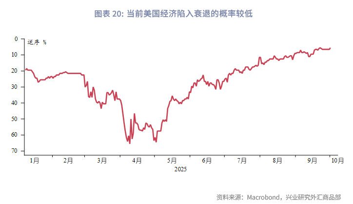 展望未來一至兩個季度,港股的走向將取決於分母端與分子端的雙重博弈:分母端主要由美聯儲的降息路徑及美國經濟的軟硬着陸程度共同驅動;而分子端則更多取決於中國內地基本面的修復節奏與強度。在所有情景預測中,我們均將1)美國經濟短期內陷入衰退的概率較低(依據興業研究外匯商品部的測算);2)中國內地經濟溫和修復作爲核心基準假設,主要原因是近期發佈的2025年1-8月經濟數據,特別是工業企業利潤數據,顯示出整體經濟企穩、結構優化且內生動能正在積聚的良好勢頭。