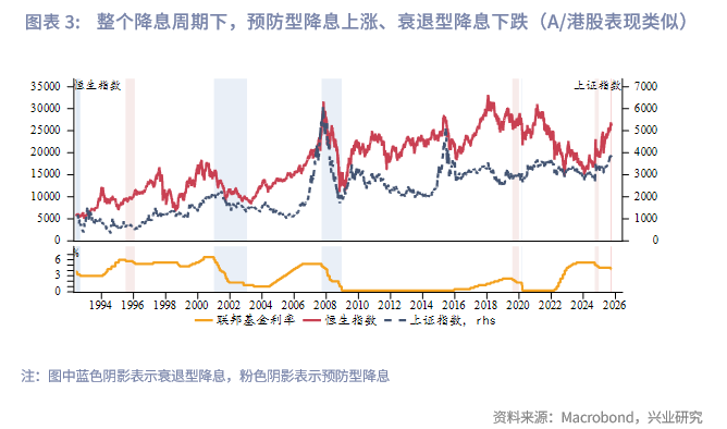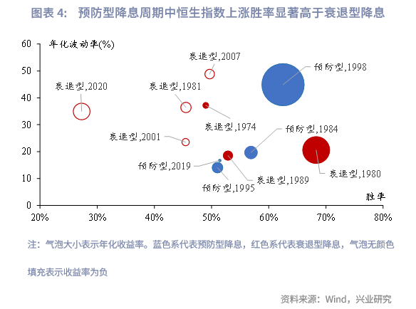1)就大勢而言:港股在降息週期中通常呈現“預防型降息上漲、衰退型降息下跌”的特徵。