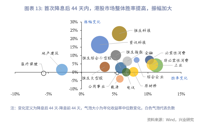 通過上述分析框架,我們可以從穩定性(對應勝率)、波動性(對應振幅或者波動率)與收益(對應區間收益率)三個層面,全面刻畫美聯儲降息環境下港股的長短期市場表現。