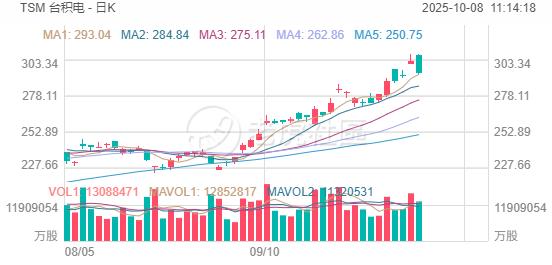 10月8日,美銀證券發表報告,上調臺積電2026及2027財年的每股盈利預測各8%與9%,主要由於定價前景改善,重申“買入”評級,並將目標市盈率由21倍上調至22倍,目標價由290美元調高至330美元。