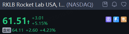 太空概念股 Rocket Lab USA, Inc. 盤前漲超4%,公司與日本iQPS公司簽署多次發射協議。