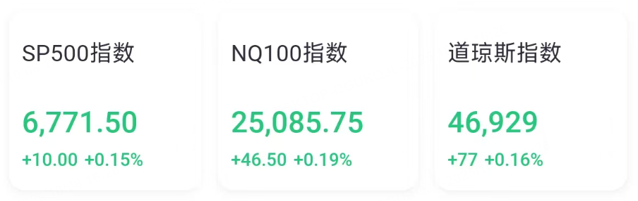 同時,美光科技 盤前漲超1%,英偉達漲0.68%,AMD漲0.95%,臺積電漲0.38%,英特爾跌0.35%。