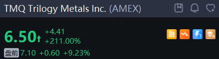 礦業公司 Trilogy Metals Inc. 續漲超9%,昨日飆升211%後。美國政府宣佈將收購Trilogy Metals 10%的股份,作爲一項3560萬美元投資計劃的一部分,旨在保障阿拉斯加州的關鍵能源與採礦項目。