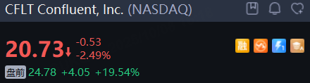 Confluent, Inc. 盤前大漲超19%,消息稱公司正在探索出售事宜,其產品在支持人工智能發展方面擁有潛力。