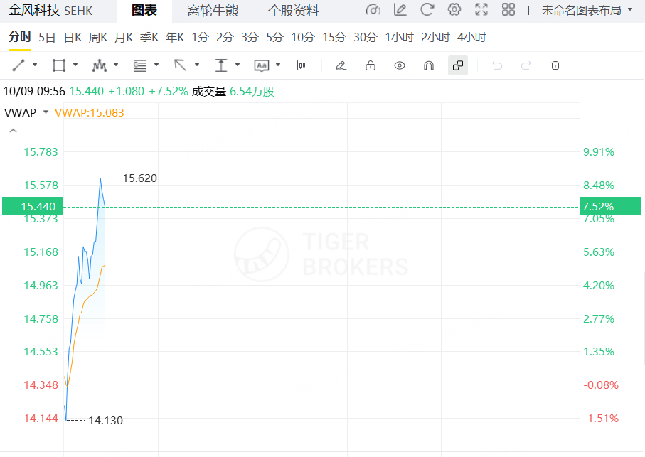 10月9日,港股風電股繼續上漲行情,其中,金風科技漲超7%續刷階段新高,東方電氣漲超4%,大唐新能源、新天綠色能源跟漲。