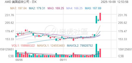 AMD隔夜大幅收漲逾11%,股價突破230美元創歷史新高,該股近三個交易日累計大漲43%。這波漲勢主要源於,本週一OpenAI宣佈與AMD達成合作,將部署合計算力6千兆瓦(GW)的AMD芯片。當天,AMD股價一度漲近38%,收漲近24%,爲一年來最佳單日表現。