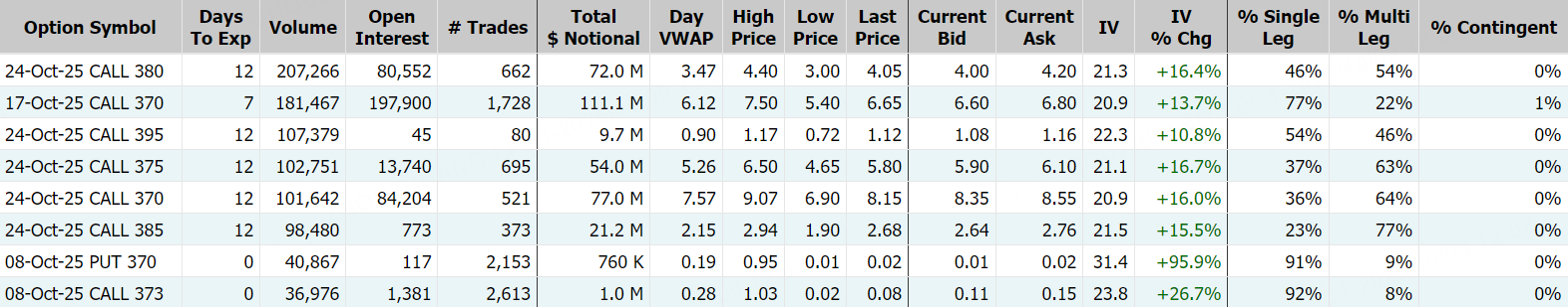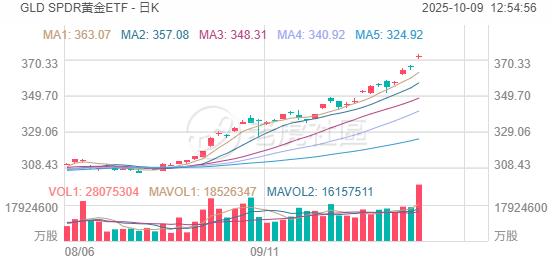 期權方面,SPDR黃金ETF當日期權成交187.56萬張,較90日均量放大逾4倍,看漲期權佔比75.1%,其中於10月24日到期的380美元行使價的看漲期權成交居前,成交超20萬張; $GLD 20251024 380.0 CALL$