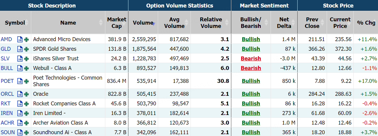 週三,期權市場總成交量6045.04萬張合約,高於90日均量;AMD當日期權成交258.09萬張,位居期權總成交榜首,多張Call單大漲逾1000%;GLD、SLV當日期權分別成交187.56萬張、122.88萬張,看漲期權成交活躍>>