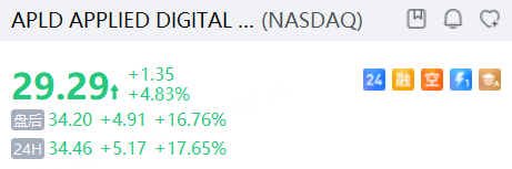 10月10日,美股夜盤時段,Applied Digital漲超17%,Q1營收暴漲84%超預期。