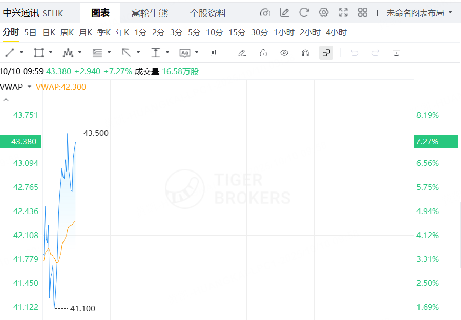 10月10日,港股中興通訊盤初漲超7%,股價再創歷史新高。