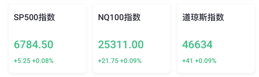 10月10日週五,美股三大股指期貨在盤前時段持續震盪。納指100指數期貨漲0.09%,報25311點,標普500指數期貨漲0.08%,報6754點,道瓊斯指數期貨漲0.09%,報46634點。