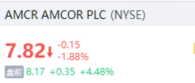 消費品包裝公司Amcor漲超4%,公司任命新的CFO並上調2026財年展望。