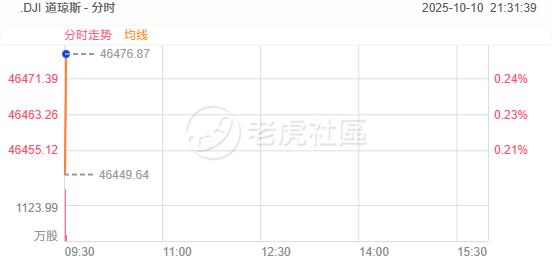 10月10日(週五)三大指數小幅高開,道瓊斯指數開盤上漲87.08點,漲幅0.19%,報46445.50點;標普500指數開盤上漲5.87點,漲幅0.09%,報6740.98點;納斯達克綜合指數開盤上漲32.66點,漲幅0.14%,報23057.29點。