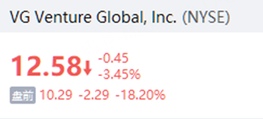 Venture Global跌幅擴大至18%,公司在英國石油公司液化天然氣仲裁案中敗訴。