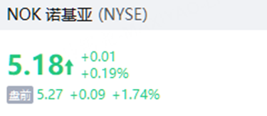 諾基亞漲近2%,聯合HPE打造AI驅動自主網絡。