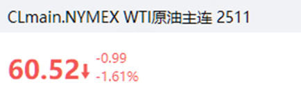 國際油價跌1.61%,報60.52美元/桶。