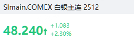 白銀漲2.3%,報48.24元/盎司。