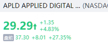 Applied Digital漲超27%,Q1營收暴漲84%超預期。