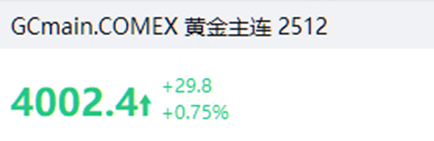 金價漲0.75%,報4,002.4美元/盎司。