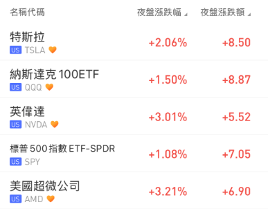 美股明星科技股夜盤集體反彈,臺積電大漲4%,英偉達漲超3%,特斯拉漲超2%;中概股走高,阿里巴巴漲超4%,百度漲超3%,拼多多漲超2%。