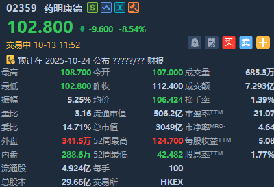 華盛資訊10月13日訊,港股醫藥外包概念股走弱,截至發稿,康龍化成跌近9%。
