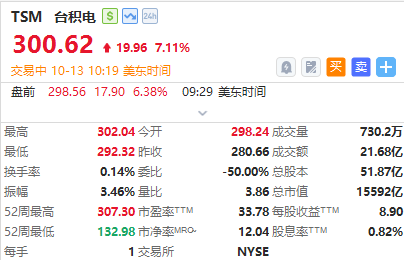 華盛資訊10月13日訊,熱門中概股大幅反彈!小馬智行漲超10%,萬國數據漲超8%,臺積電漲超7%,金山雲、阿里巴巴漲超5%,京東、拼多多漲近4%