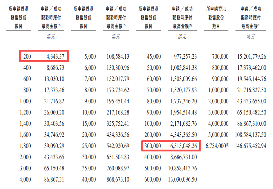 乙組門檻爲30萬股,申購所需資金約651.51萬港元。