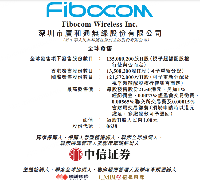 10月14日,廣和通於10月14日至10月17日招股,公司擬全球發售約1.35億股H股,其中,香港發售佔10%,國際發售佔90%,另有超額配股權15%。每股發售價19.88港元-21.5港元,每手200股,預期H股將於10月22日在聯交所開始買賣。
