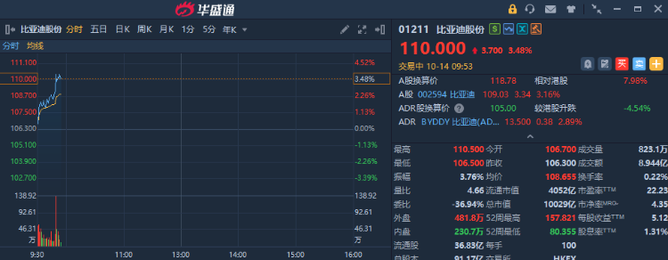 華盛資訊10月14日訊,港股汽車板塊集體走強,小鵬汽車、比亞迪股份漲逾3%。
