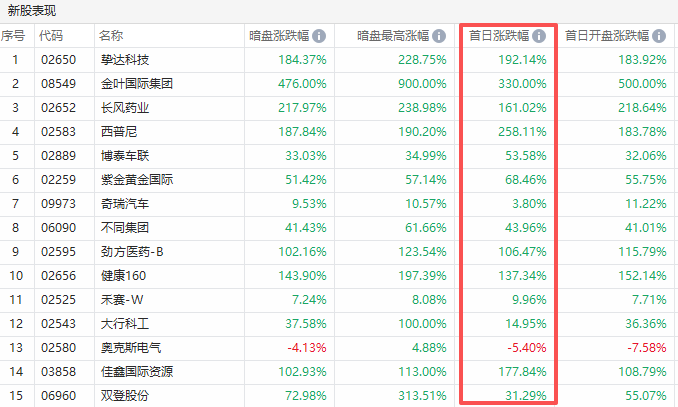 其中,上週上市的金葉國際集團首日漲幅達到驚人的330%,公開發售超購11465倍登頂“歷史最強超購王”;另一新股長風藥業上市首日收漲161%,中籤一手首日賺近1.2萬港幣。