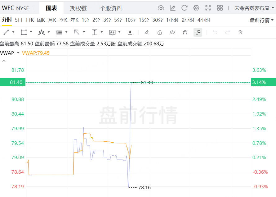 受財報影響,富國銀行盤前漲超3%。