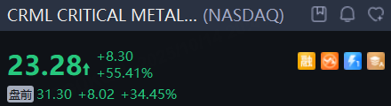 稀土概念股繼續強勢。 CRITICAL METALS CORPORATION 暴漲超34%,Energy Fuels Inc漲超14%,USA Rare Earth Inc. 漲超11%,MP Materials Corp. 漲超6%。