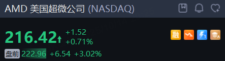 AMD漲超3%,甲骨文旗下雲部門計劃在明年下半年部署5萬塊AMD AI芯片。