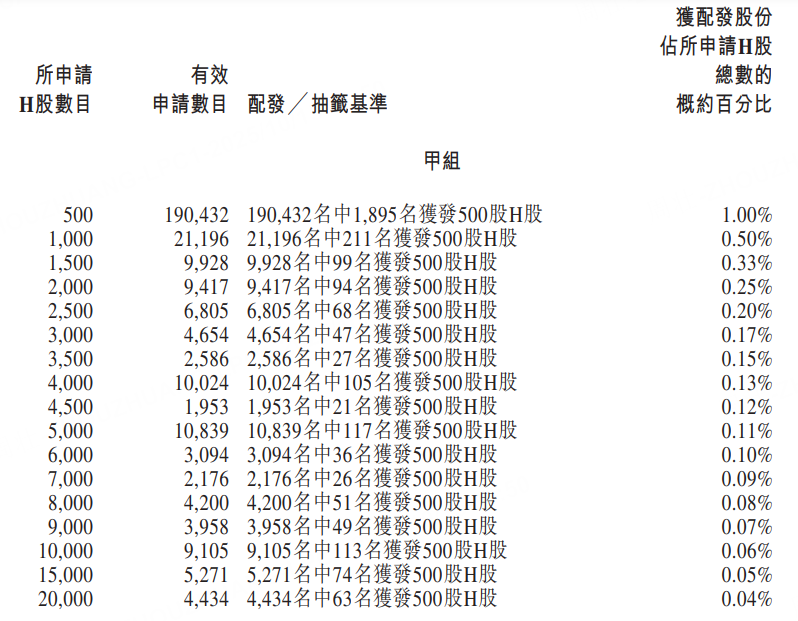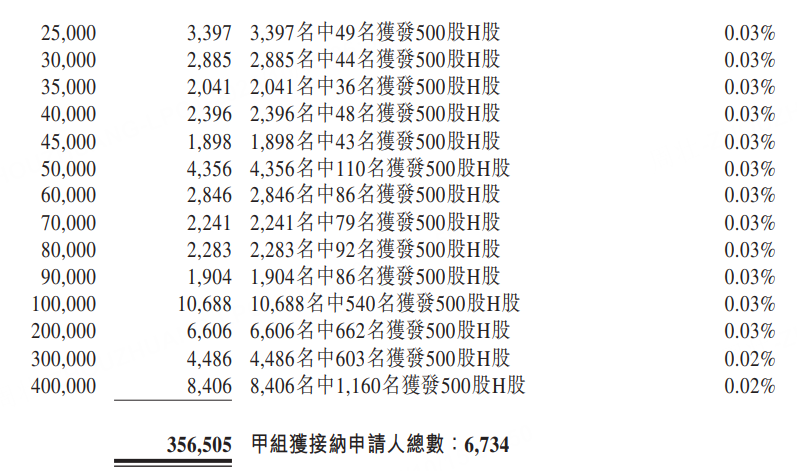 公開發售階段軒竹生物獲4908.33倍認購,公開發售的發售股份最終數目爲673.35萬股股份,佔發售股份總數的約10%。合共接獲約37.60萬份有效申請,受理申請數目13467份,申購一手獲配發股份佔所申請股份總數的概約百分比爲1%。