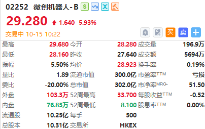 華盛資訊10月15日訊,AI醫療概念股走高,截至發稿,微創機器人-B漲近6%,京東健康漲超4%,晶泰控股漲超3%。