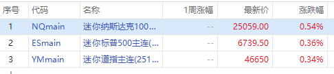 美股三大指數期貨盤前齊跌,納指期貨 $NQmain 漲0.54%,標普500期貨 $ESmain 漲0.36%,道指期貨 $YMmain 漲0.34%。