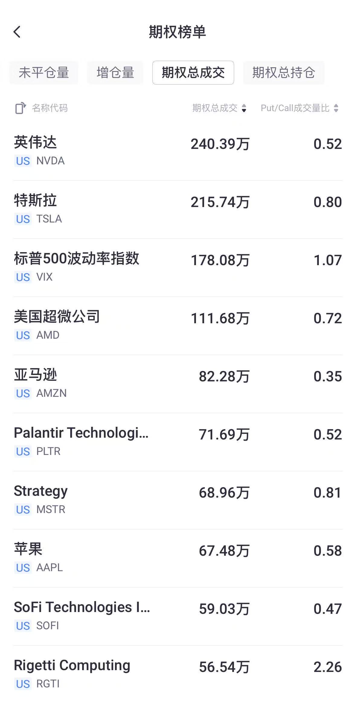 二、期權成交總量TOP10