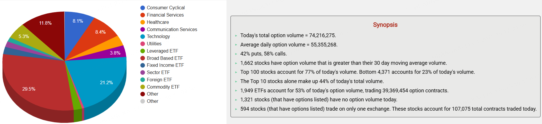 期權市場總成交量74,216,275張合約,其中看漲期權佔比58%。