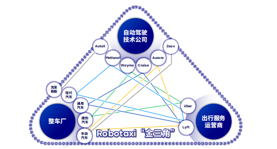 而鑑於獨立運營對資金、技術、人才等要求很高,國內Robotaxi業務運營大多以合作模式爲主,三類玩家以投資入股、合資公司等方式合作,各自發揮自身優勢。(俗稱“金三角模式”),例如文遠知行、小馬智行入股由廣汽和騰訊聯合創立的如祺出行。