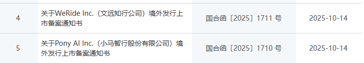 10月14日,國內自動駕駛領域兩大頭部企業——小馬智行和文遠知行,雙雙獲中國證監會備案通過,邁出回港上市的關鍵一步。據悉,小馬智行計劃發行不超過1.02億股普通股,文遠知行則擬發行約1.024億股。繼禾賽之後,這兩家公司成爲今年第二、三家搭建“港股+美股”雙重主要上市架構的科技企業,引發市場高度關注。