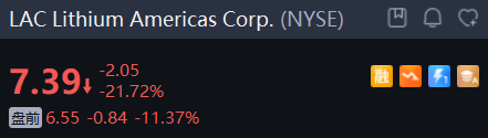 Lithium Americas Corp. 盤前續跌超11%,週四大跌超21.7%。摩根大通將該公司的評級從“中性”下調至“減持”,目標價爲5美元,認爲該股估值已顯著偏高。