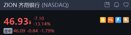 銀行股盤前普跌。截至發稿,美國銀行、花旗 跌超2%, 高盛、富國銀行跌1.7%, 摩根士丹利 跌1.5%,摩根大通 跌1.3%。“爆雷”事件的主角 齊昂銀行 跌1.8%, 阿萊恩斯西部銀行 跌2%。