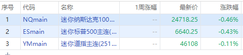 美股三大指數期貨盤前齊跌,納指期貨 $NQmain 跌0.46%,標普500期貨 $ESmain 跌0.43%,道指期貨 $YMmain 跌0.11%。