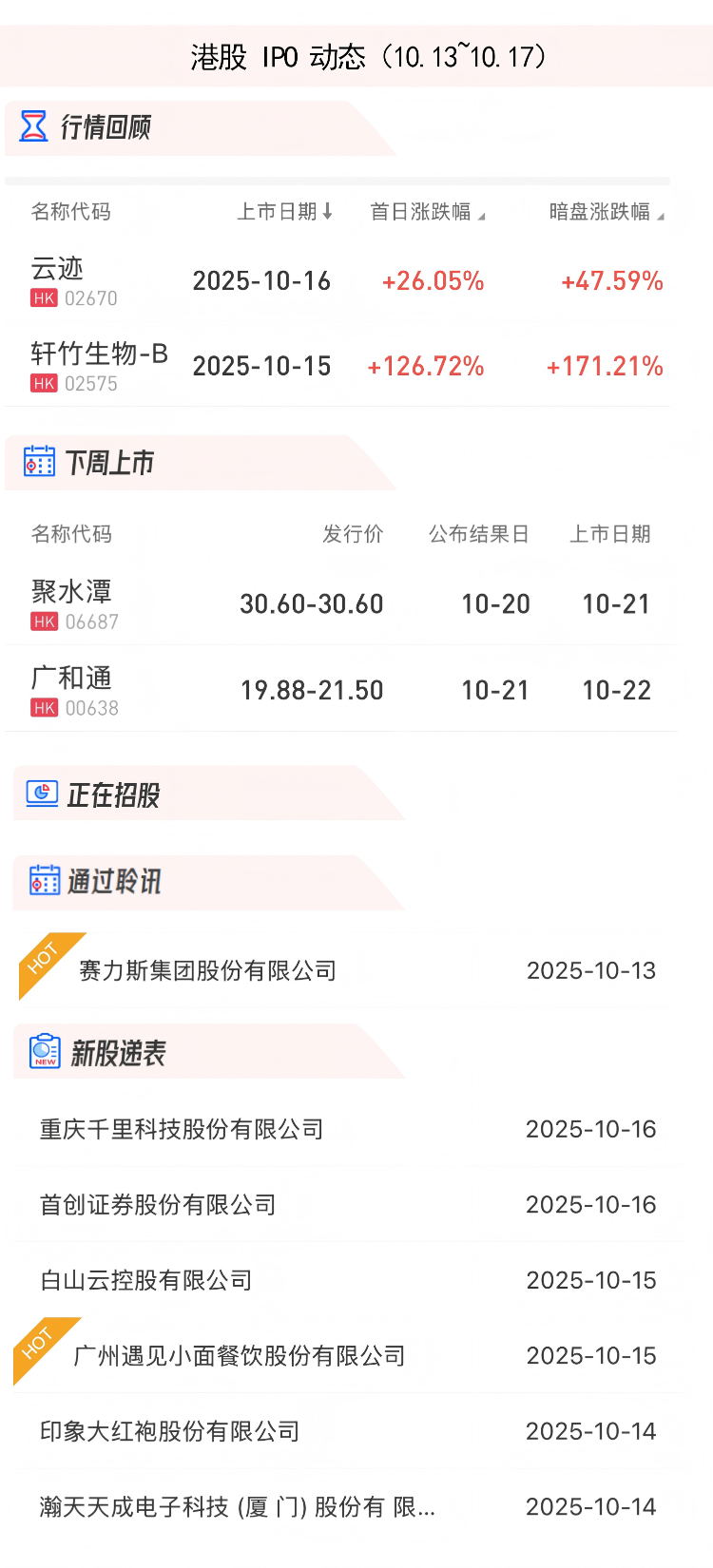 港股IPO動態