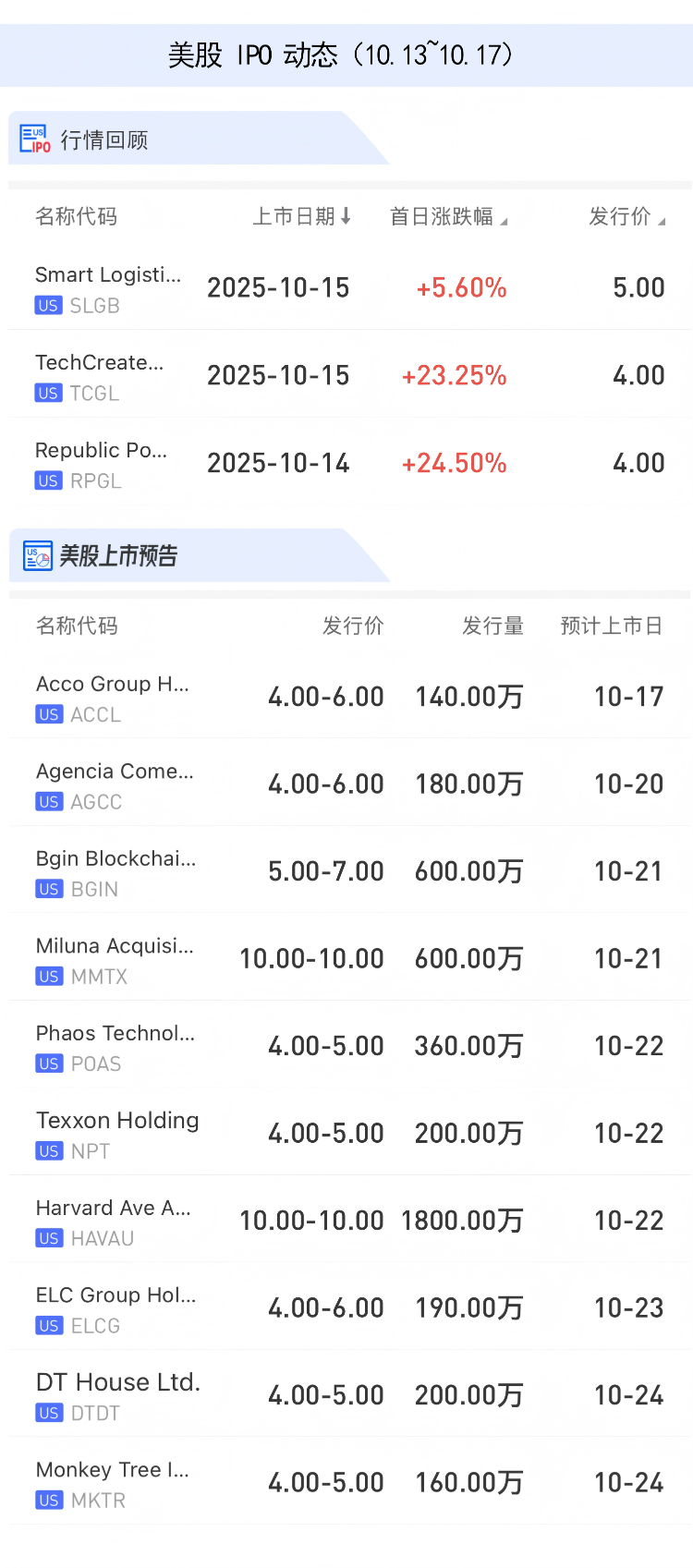 美股IPO動態